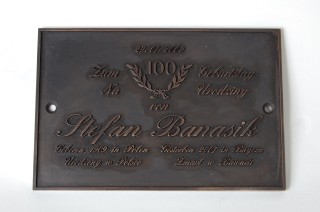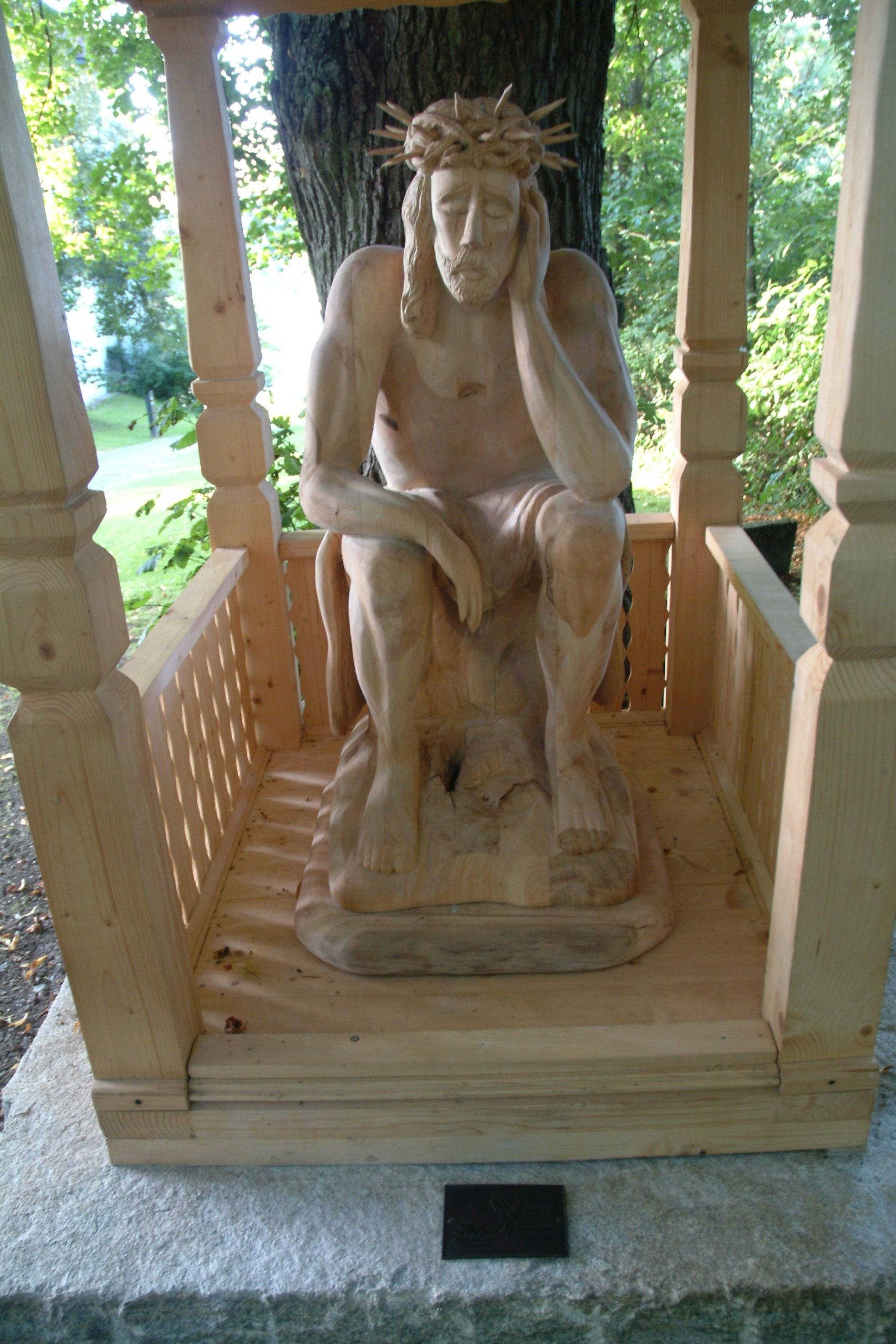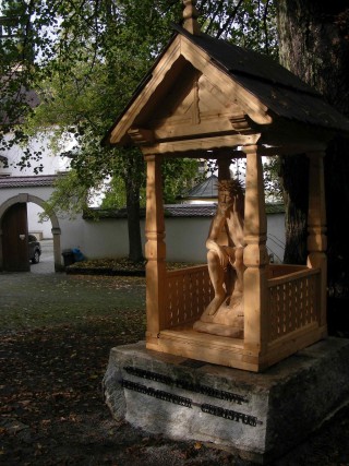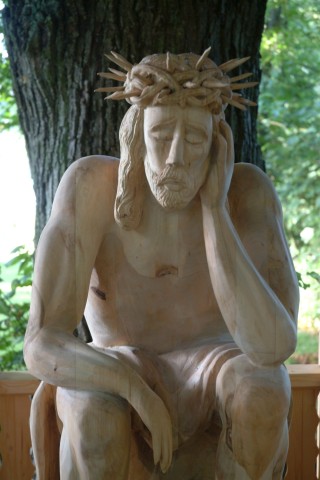 Inschriften: "Chrystus Frasobliwy/Bekümmerter Christus - Zum 100. Geburtstag von Stefan Banasik"