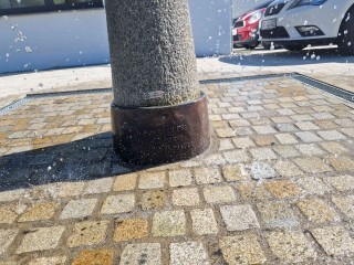 Inschriften: Blütenbrunnen 1983 / Hans Rieser / Akademischer Bildhauer / Straubing